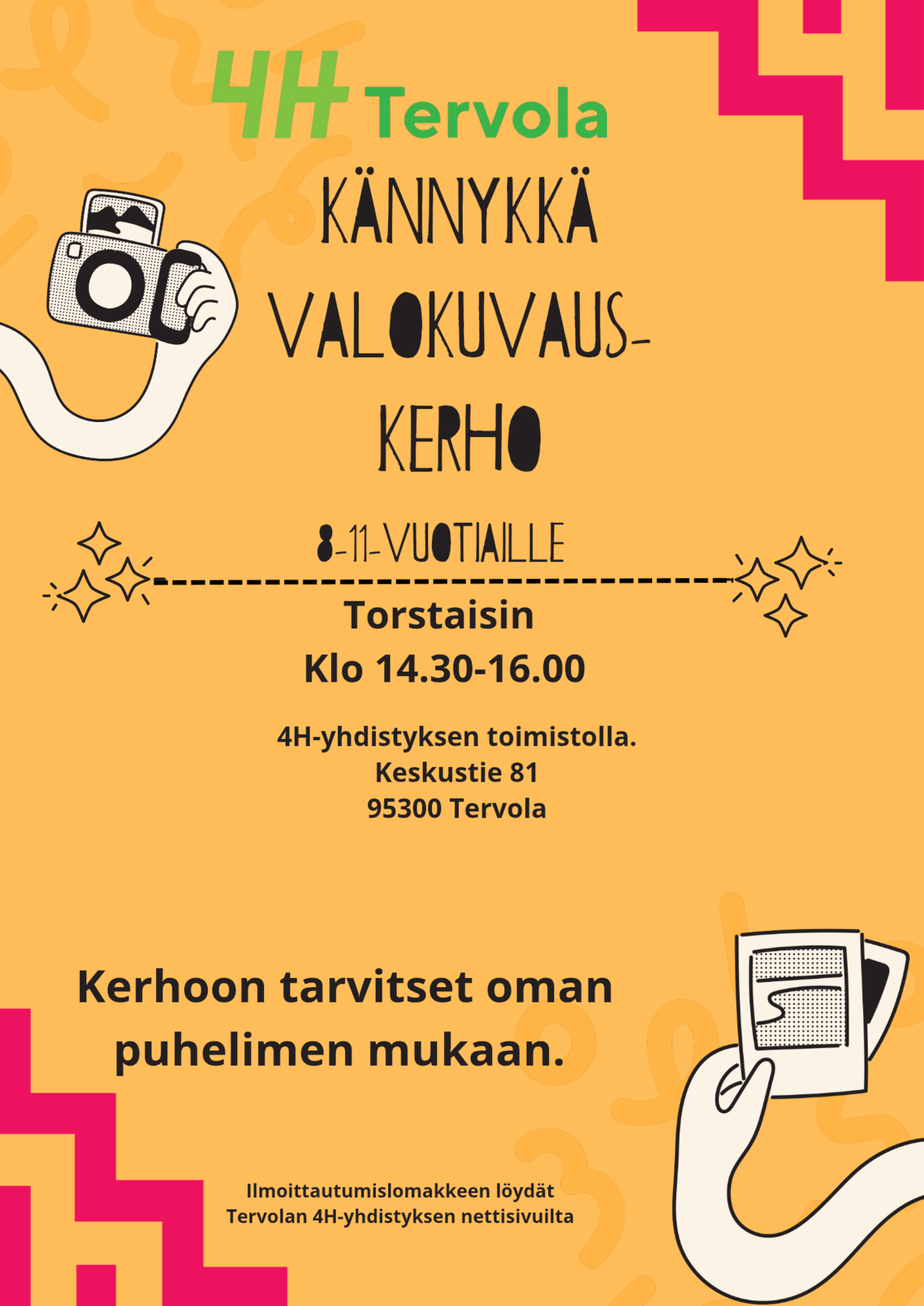 Valokuvauskerho 8-11-vuotiaille.